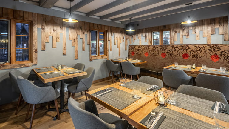 Jackalopes Bar and Grill at Tenaya Lodge. Outdoor dining takeout and delivery are also available. Most restaurants in Mammoth Lakes are open for indoor dining.